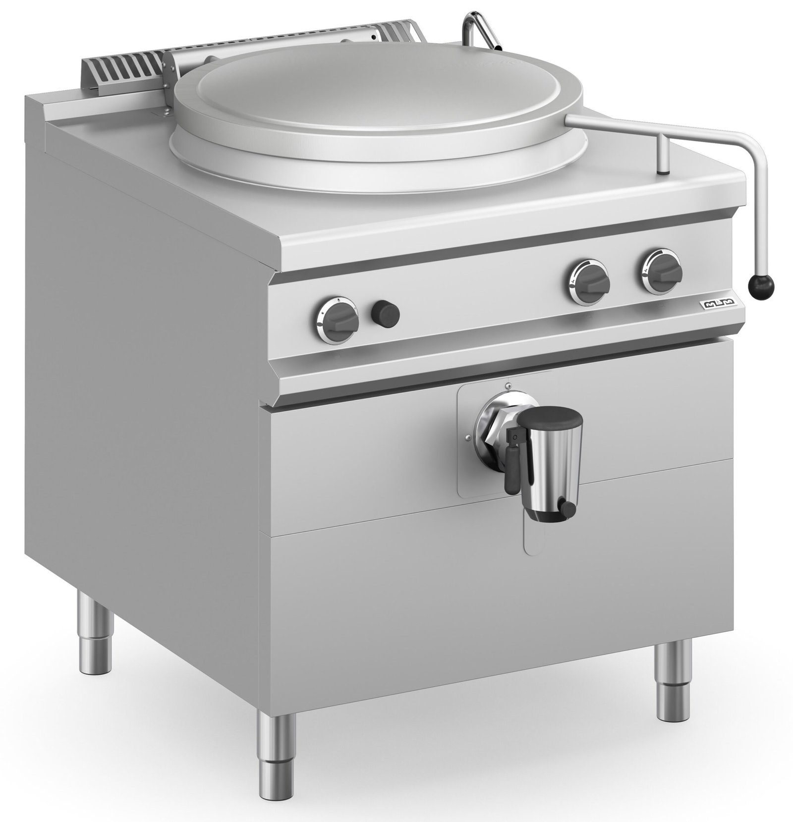 Versiones eléctricas: resistencias de inmersión controlados por perilla de 4 posiciones, presostato para el control automático del vapor en el espacio intermedio, válvula de seguridad con manómetro.
