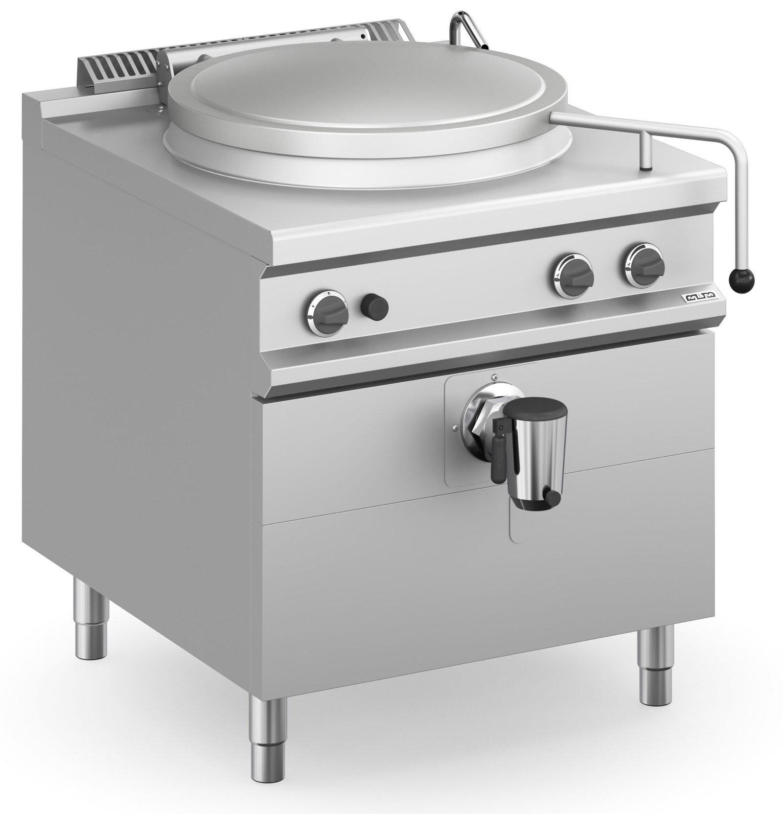 Versiones eléctricas: resistencias de inmersión controlados por perilla de 4 posiciones, presostato para el control automático del vapor en el espacio intermedio, válvula de seguridad con manómetro.