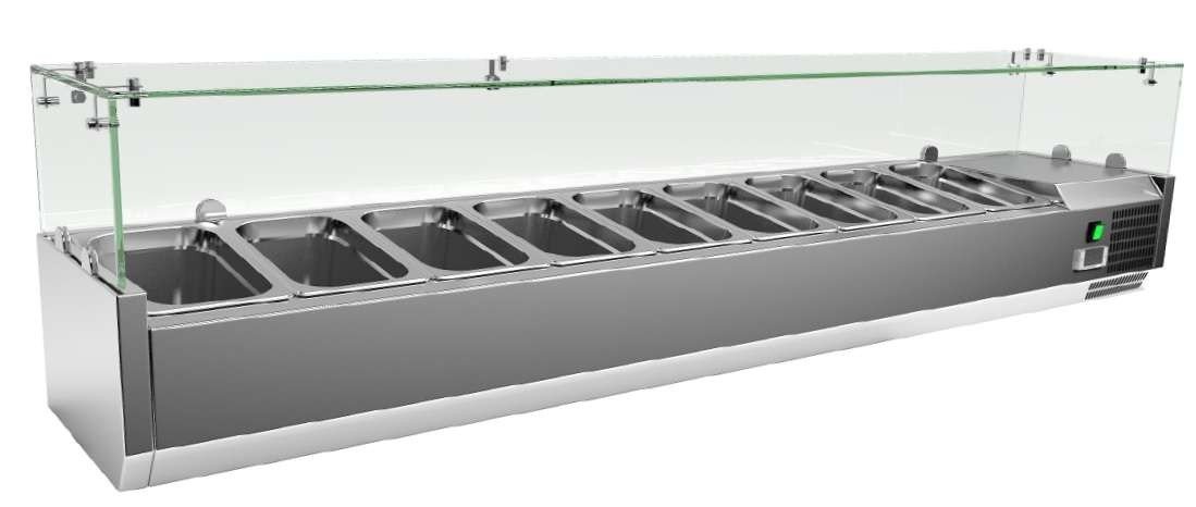 Vitrina 8 cubetas GN1/4 con Cúpula de Vídrio de 1800 x335 x440h mm PEKIN VRX1800330FG